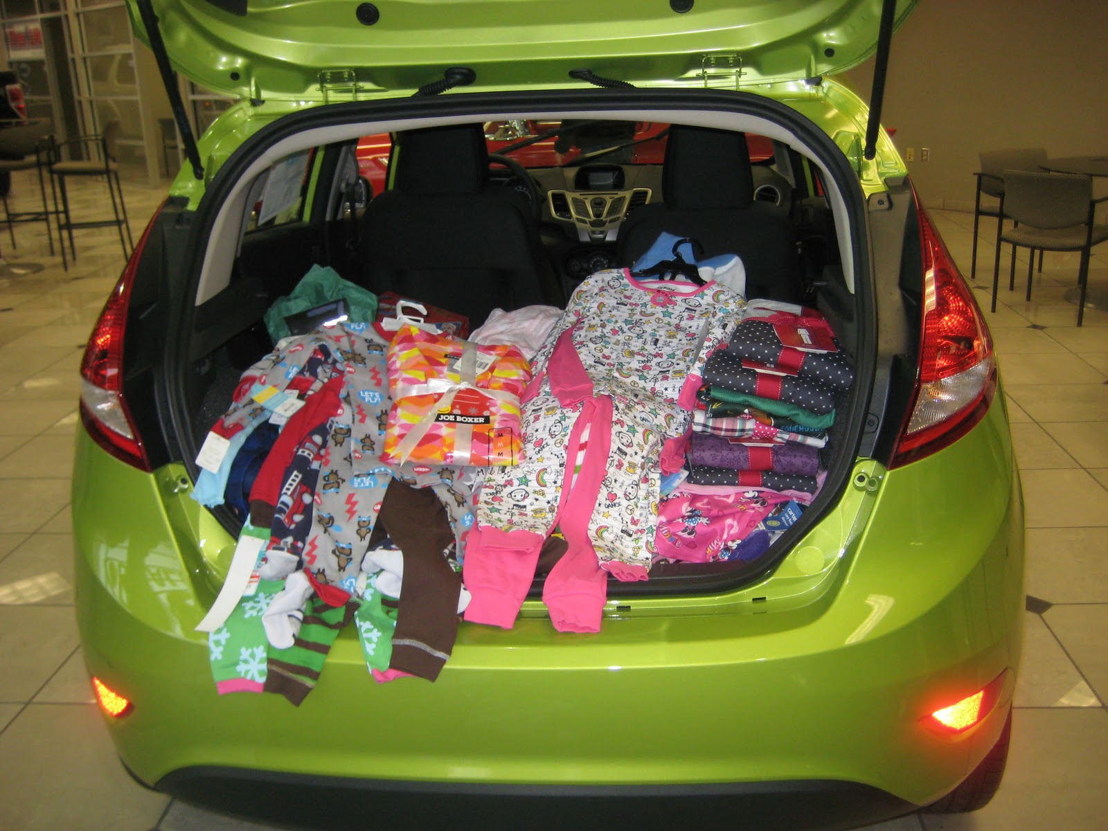 SAFEHOME teamed up to raise awareness of domestic violence in our community. In a festive atmosphere surrounded by shiny new Fords, there was a live remote from Mix 93.3, a tuba playing what could be described as holiday tunes, and pancakes flipping everywhere. I saw a woman standing a good 10 feet away from the cooktop catching pancakes on her paper plate. Lots of pajamas were brought for the SAFEHOME holiday store and 3 of the luckiest people won a drawing for iPads. During most of the month of December, Bob Allen Ford will donate 15% of car sales to the Children's Program at SAFEHOME.